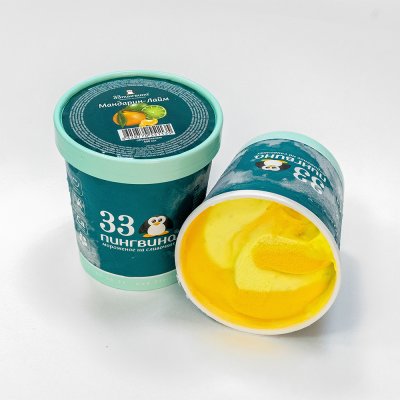 Двухслойный сорбет с мякотью и кусочками мандарина и лайма Состав вода питьевая очищенная, сахар, пюре из мандарина, лимонный концентрированный со