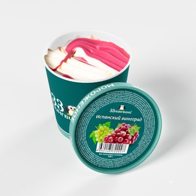 Мороженое сливочное со вкусом белого винограда и фруктовым наполнителем из красного винограда. Состав молоко коровье пастеризованное, сахар, вода,