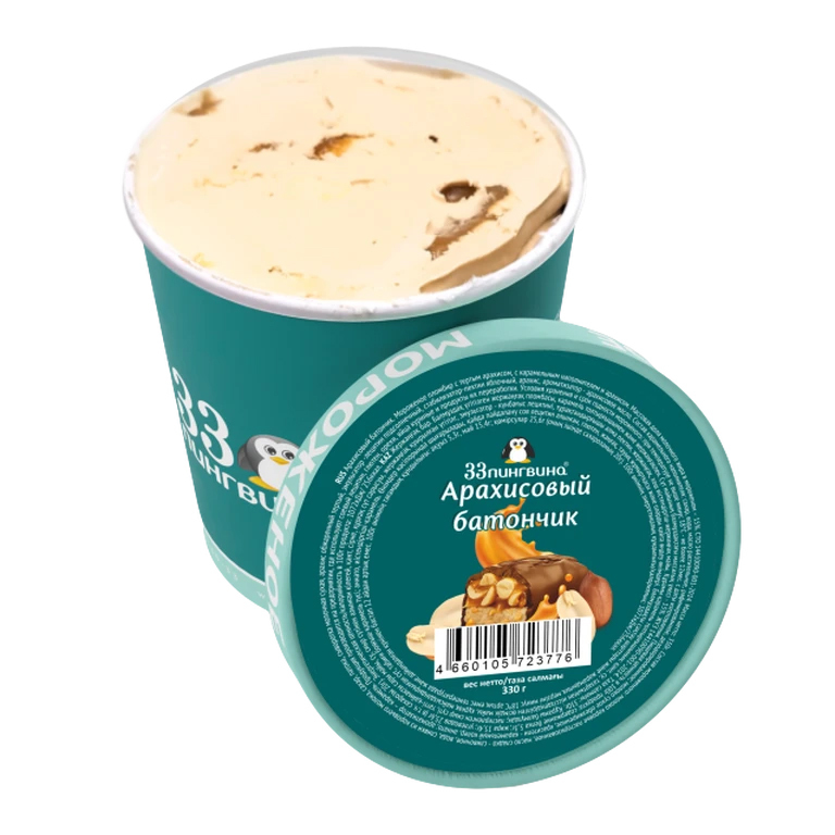 Пломбир с арахисом и прослойкой карамельного соуса.