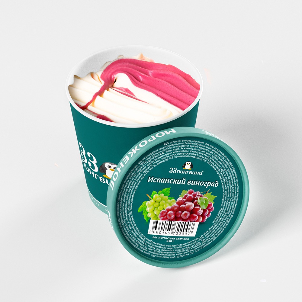 Мороженое сливочное со вкусом белого винограда и фруктовым наполнителем из красного винограда.