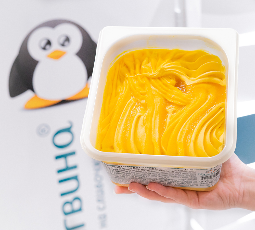 Сливочное мороженое с бархатистым манговым пюре и цельными кусочками спелого манго